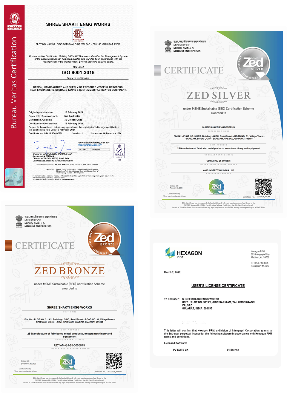 Shree Shakti Engineering Works is an ISO 9001:2015, ISO 45001:2018, and ZED Silver certified organization with over 15 years of proven expertise in the design, engineering, and fabrication of chemical process equipment. We operate two modern manufacturing units located in Sarigam (Valsad) and Bharuch (Saykha), Gujarat, equipped with advanced machinery and skilled manpower to execute standard and custom-built fabrication projects of all scales.